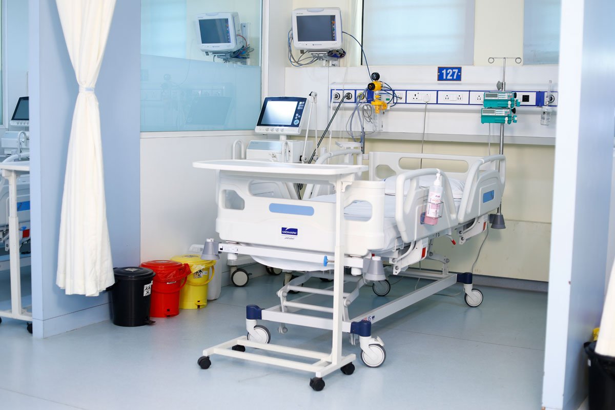 1. Critical Care Unit Just along the corridor is the Critical Care Unit manned again by intensivists round the clock and ICU nurses too who will care for the patients. The department has an efficient monitoring system and fully compliant with the high-end ventilators to ensure patient safety and speedy recovery with supportive therapeutics modalities. The unit is equipped with high flow nasal canula equipment to ensure that those who require this form of therapy will be given the same There is a dialysis center with 5 of the latest model dialysis machines. These machines have the capability of self-disinfection, post each dialysis. This ensures patient safety during the procedure. Some of the ICU beds are dialysis compliant. Those cases requiring the dialysis in the ICU will not need to be shifted but can be within the ICU and have the dialysis done. The unit has 24 beds and also a patient isolation room to ensure there is no cross infection.