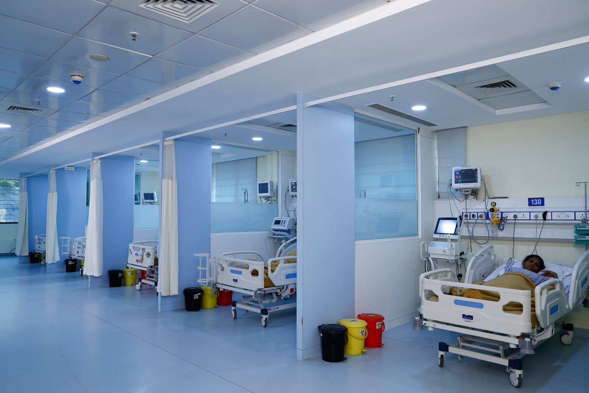 1. Critical Care Unit Just along the corridor is the Critical Care Unit manned again by intensivists round the clock and ICU nurses too who will care for the patients. The department has an efficient monitoring system and fully compliant with the high-end ventilators to ensure patient safety and speedy recovery with supportive therapeutics modalities. The unit is equipped with high flow nasal canula equipment to ensure that those who require this form of therapy will be given the same There is a dialysis center with 5 of the latest model dialysis machines. These machines have the capability of self-disinfection, post each dialysis. This ensures patient safety during the procedure. Some of the ICU beds are dialysis compliant. Those cases requiring the dialysis in the ICU will not need to be shifted but can be within the ICU and have the dialysis done. The unit has 24 beds and also a patient isolation room to ensure there is no cross infection.