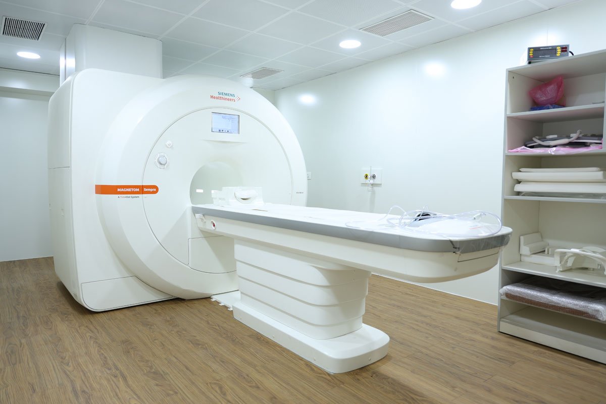 1.5T 96 Channel MRI. This is a very high-end machine whose image quality and resolution are very high-end for its class and the time taken is also slightly less than the other machines in its class. It has the capability of 3-D recreation of any of the images or sequences that may be required by the consultant.